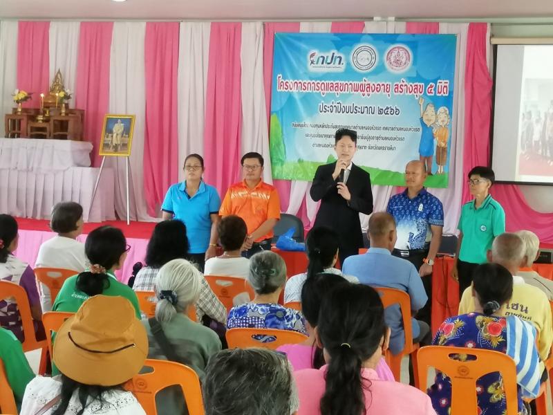 โครงการ การดูแลสุขภาพผู้สูงอายุสร้างสุข 5 มิติ ประจำปีงบประมาณ 2566 กิจกรรมที่ 5 อบรมให้ความรู้ดูแลสุขภาพผู้สูงอายุ 5 มิติและการปรับเปลี่ยนพฤตอกรรมสุขภาพเพื่อลดปัจจัยเสี่ยง ด้วยแนวคิด "ไม่หกล้ม ไม่ลืม ไม่ซึมเศร้า กินข้าวอร่อย"