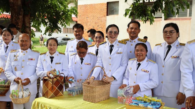 ร่วมในพิธีทำบุญตักบาตร ข้าวสาร อาหารแห้ง และร่วมพิธีถวาย