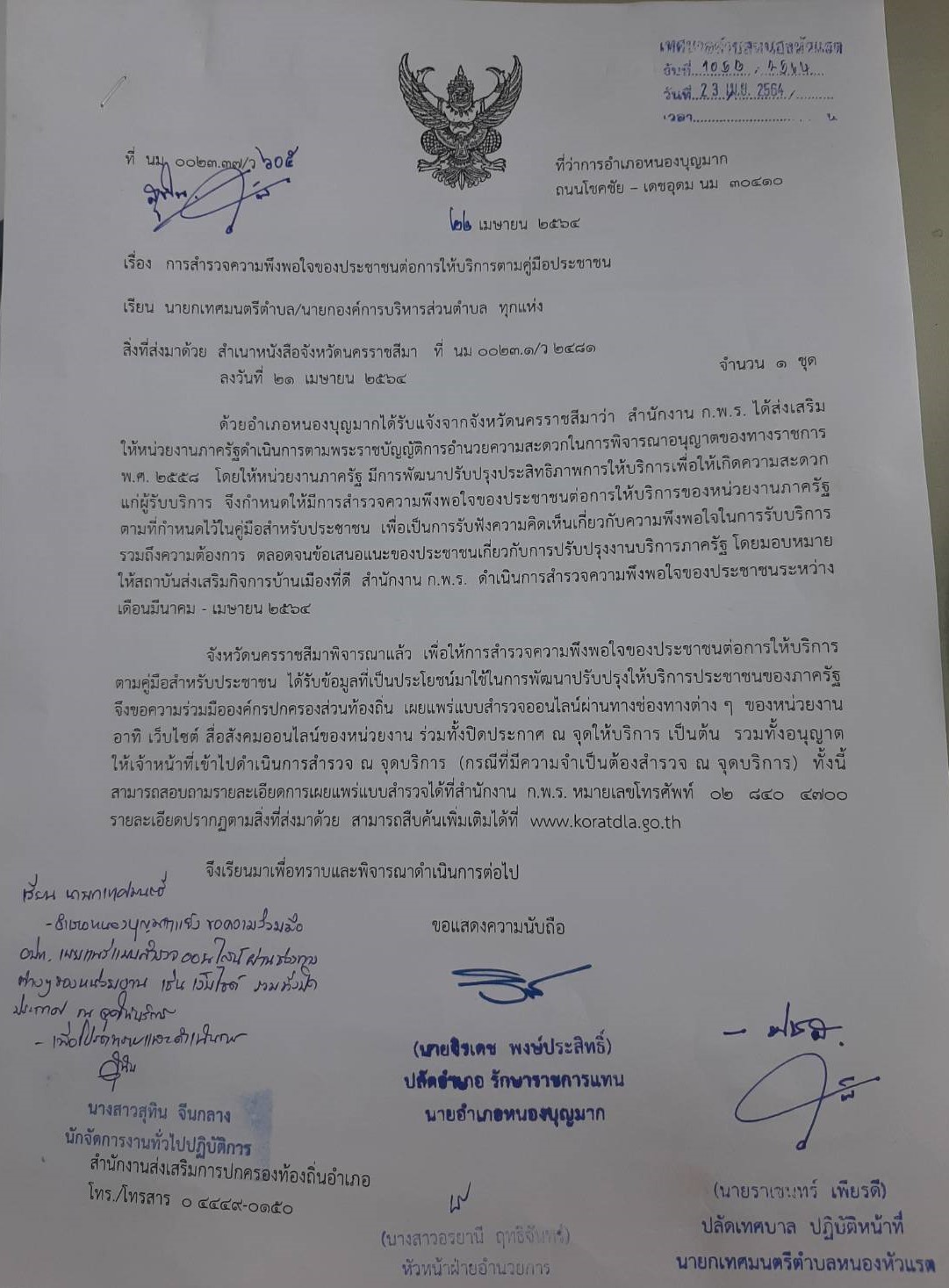 เรื่อง การสำรวจความพึงพอใจของประชาชนต่อการให้บริการตามคู่มือประชาชน