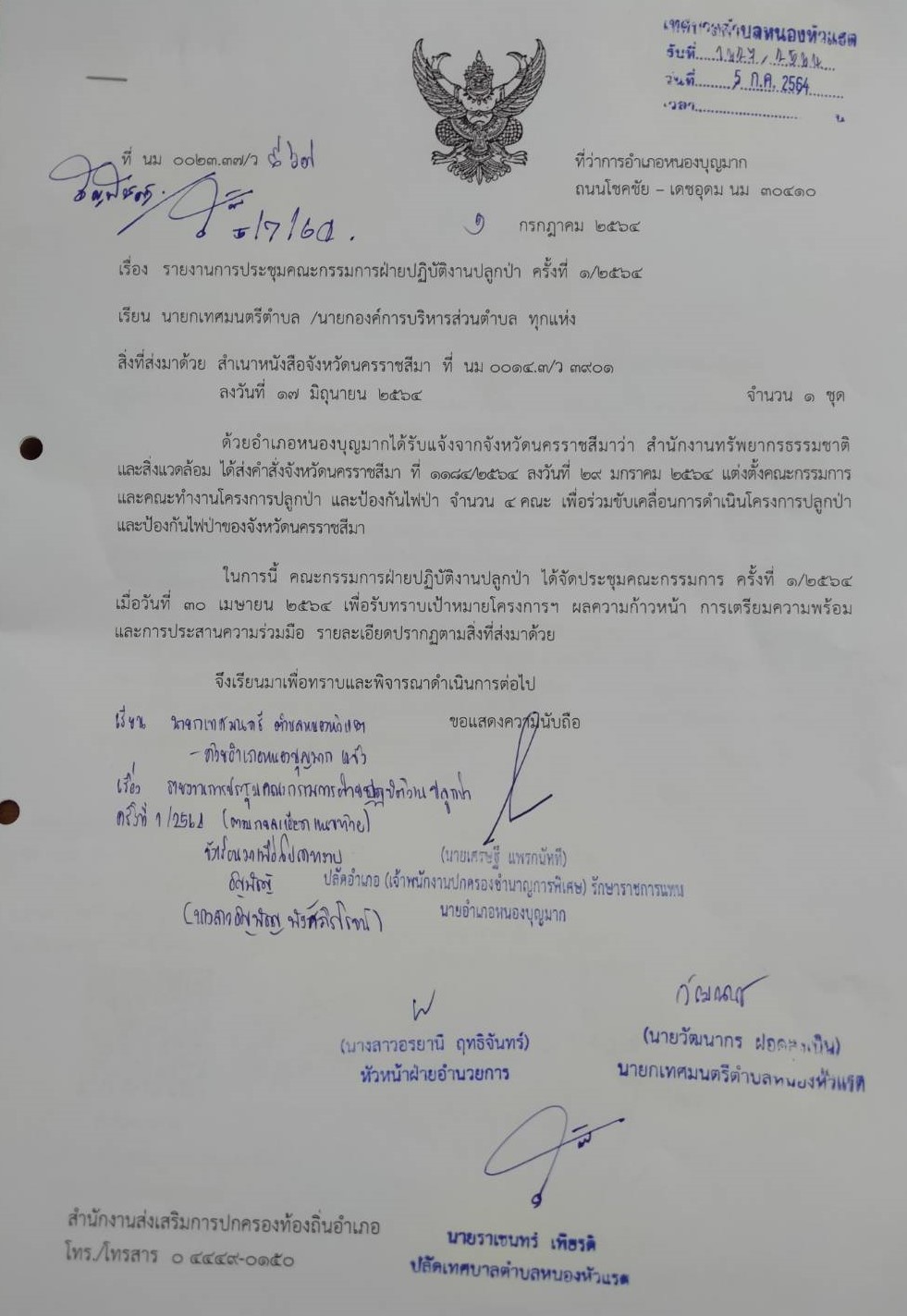รายงานการประชุมคณะกรรมการฝ่ายปฏิบัติงานปลูกป่า ครั้งที่ 1/2564
